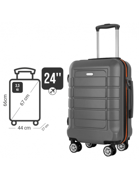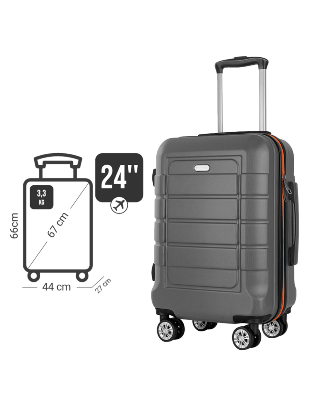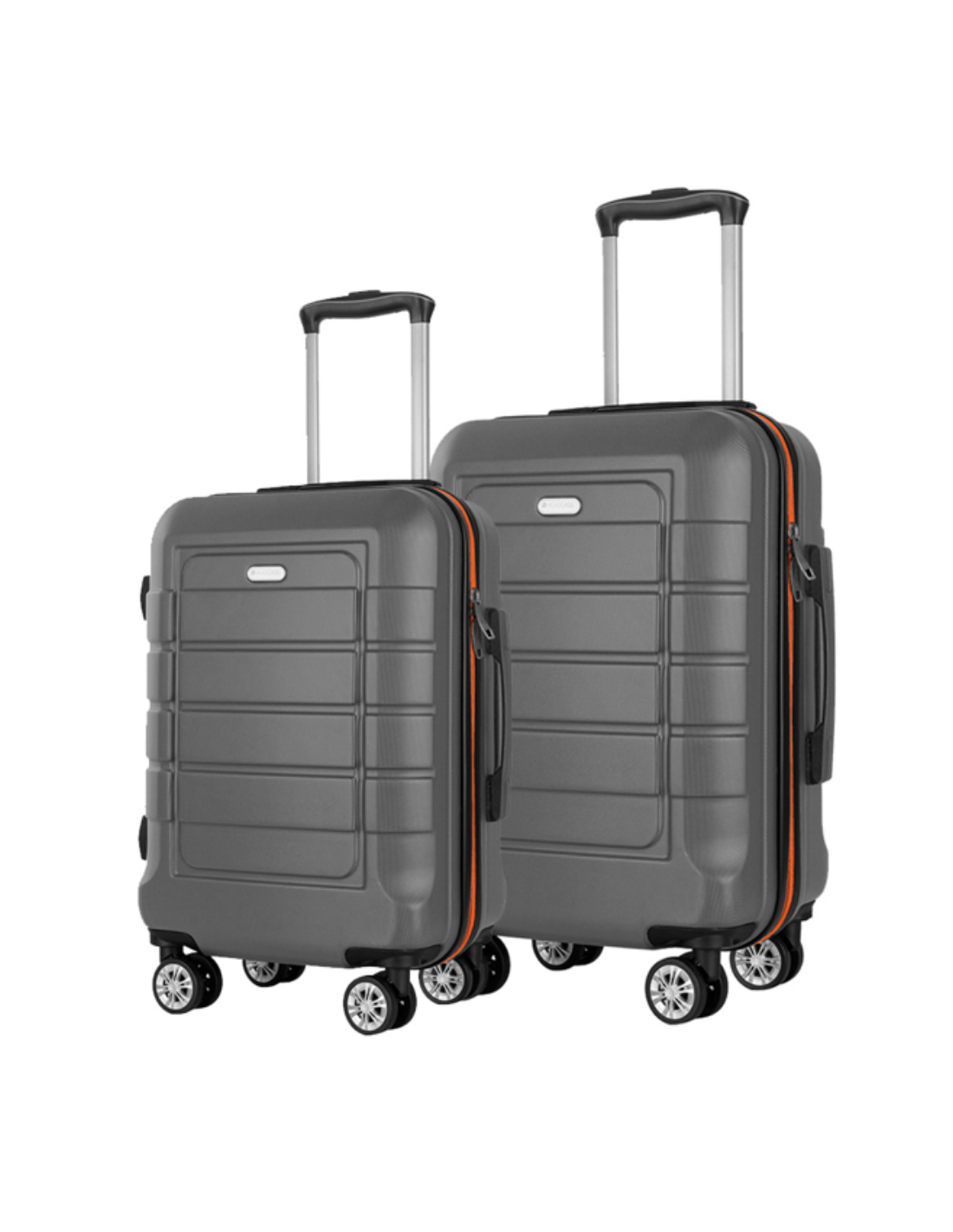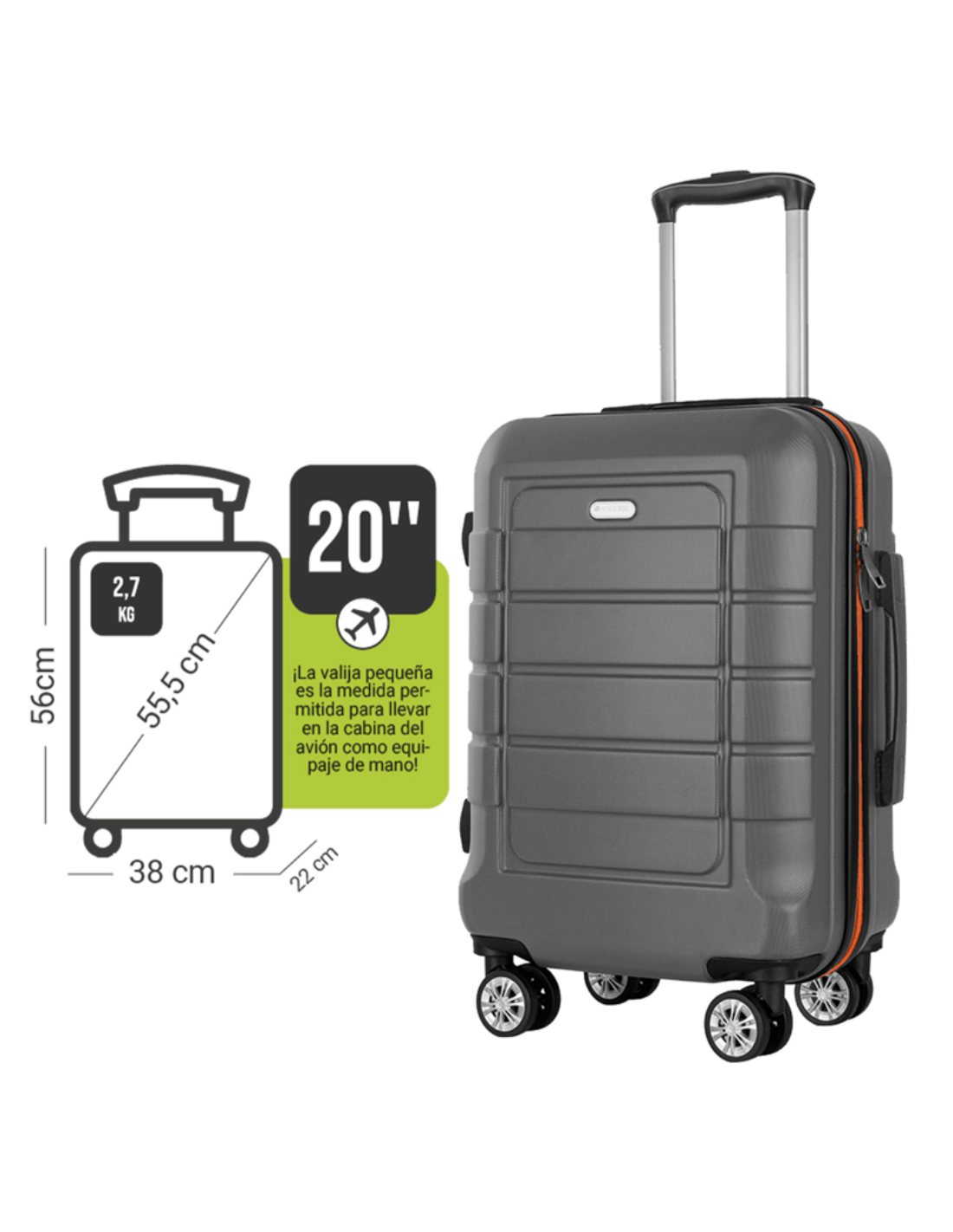 Set x2 Valijas Rígidas con ruedas 360° (Microcase) Prepárate para viajar con comodidad y seguridad con este combo exclusivo de valijas Microcase, diseñado pensando en tus necesidades de viaje. Características Principales - Este set incluye dos valijas: una de 20’’ ideal para cabina y otra de 24’’ perfecta para llevar en la bodega. Ambas cuentan con candado TSA integrado, que garantiza la seguridad de tus pertenencias durante el viaje y facilita el acceso autorizado en controles de aeropuertos internacionales. - Fabricadas con materiales livianos y resistentes, estas valijas aseguran durabilidad sin sacrificar la facilidad para transportar tu equipaje. Disponibles en dos combinaciones de colores modernos: gris con cierre naranja o negro con cierre turquesa, que aportan un toque de estilo y distinción. Funcionalidad y Comodidad - Valija de 20’’: Cumple con las medidas estándar para equipaje de mano, ideal para viajes cortos o de trabajo. - Valija de 24’’: Ofrece mayor capacidad para viajes largos o cuando necesites espacio extra. - Ambas valijas disponen de ruedas multidireccionales 360°, que facilitan el desplazamiento en cualquier dirección sin esfuerzo. - Cierres reforzados y manijas ergonómicas aseguran comodidad y resistencia. Ventajas que marcan la diferencia - Seguridad garantizada gracias al candado TSA, que protege tu equipaje y cumple con las normas internacionales. - Versatilidad y practicidad al contar con dos tamaños que se complementan para cualquier tipo de viaje. - Diseño moderno con colores exclusivos, para que viajes con estilo y personalidad.